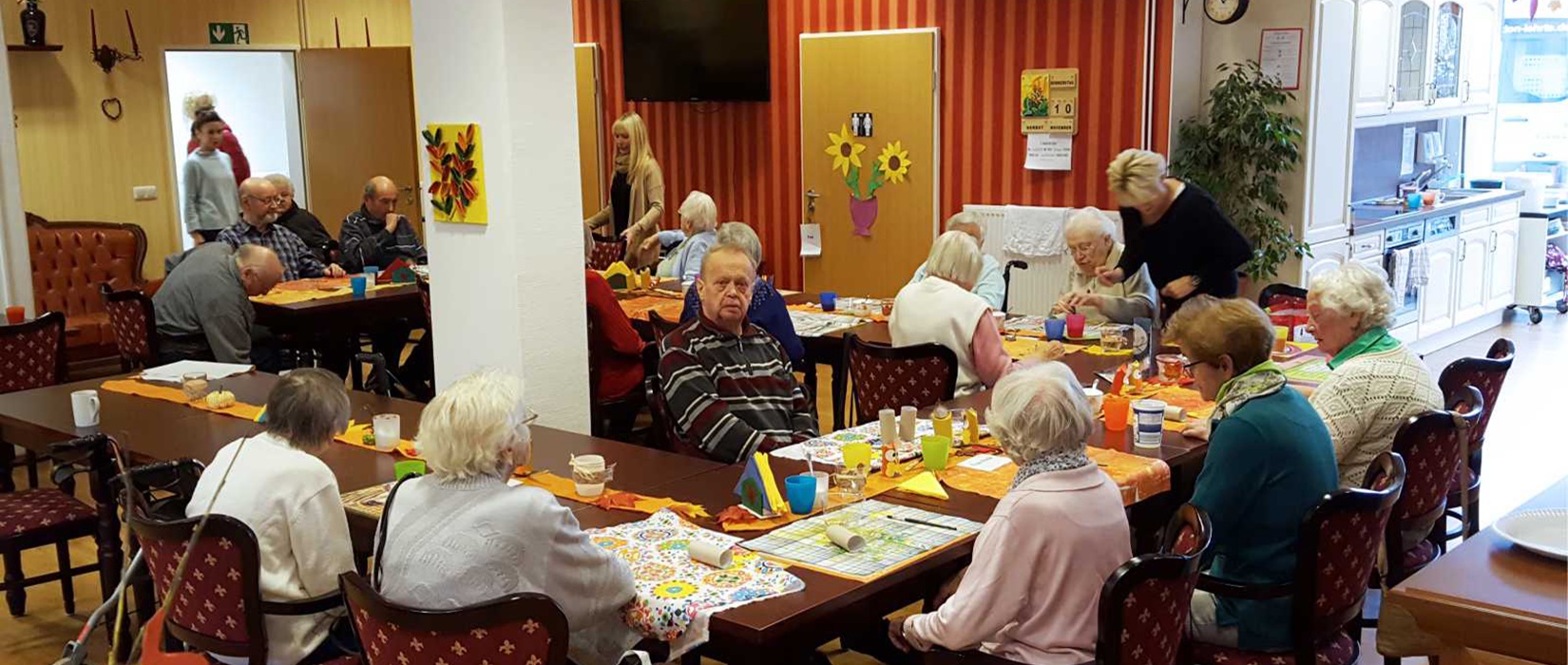 Gemeinsame Aktivitäten, wie Zeitungsartikel vorlesen und drüber reden, ergotherapeutische Übungen oder auch nur spielerische Bewegungsübungen in der Runde machen Spaß und halten fit.